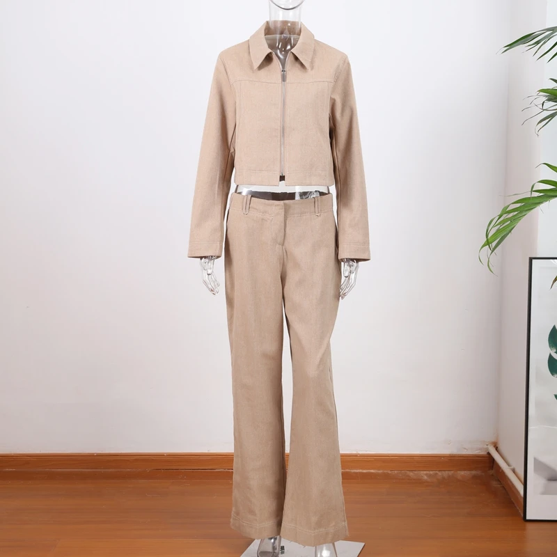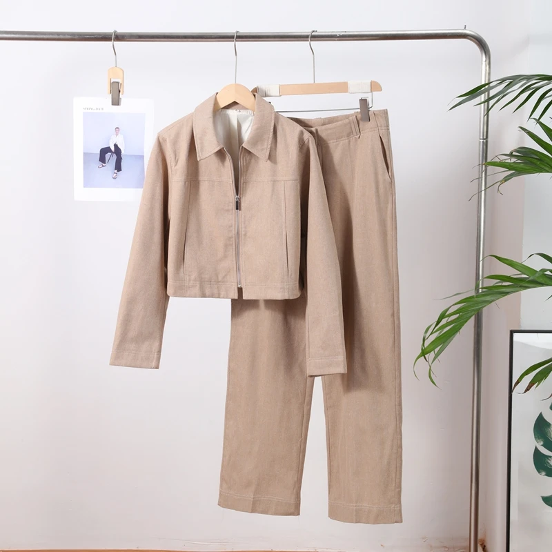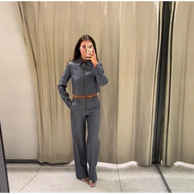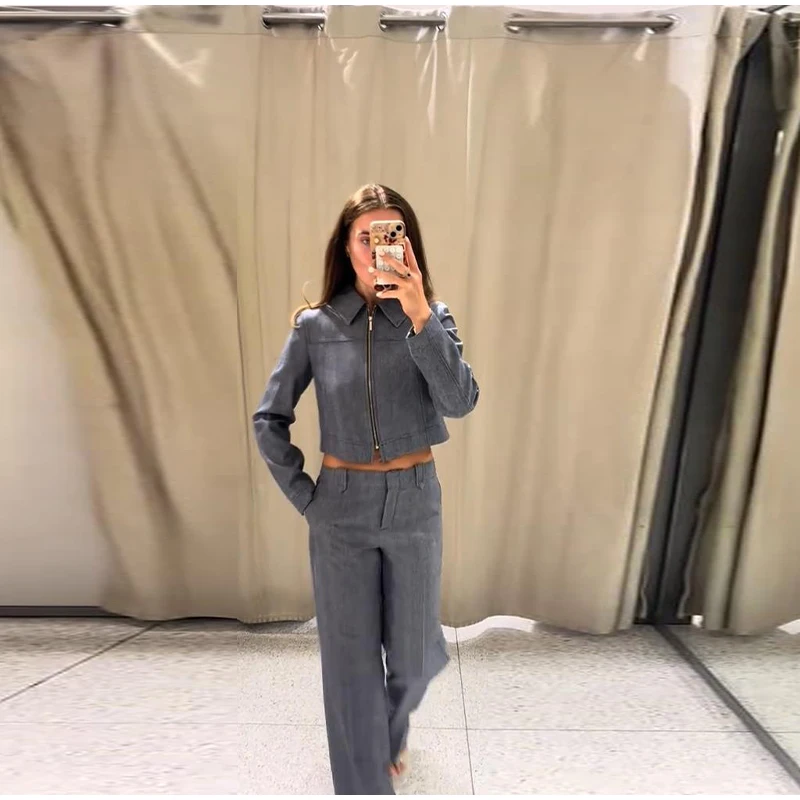 Tailored Elegance Meets Everyday Edge 👔✨ Command attention with our 2025 Autumn Casual Coat & Trouser Set for Women—a power pairing of structure and style. This two-piece outfit features a cropped, long-sleeve jacket with a sharp turn-down collar and zippered front, matched with high-waisted, straight-leg trousers that elongate your silhouette.