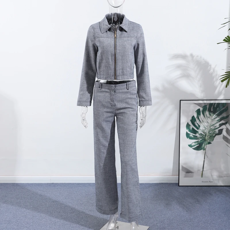 2025 Autumn Chic: Cropped Jacket & High-Waist Trouser Set